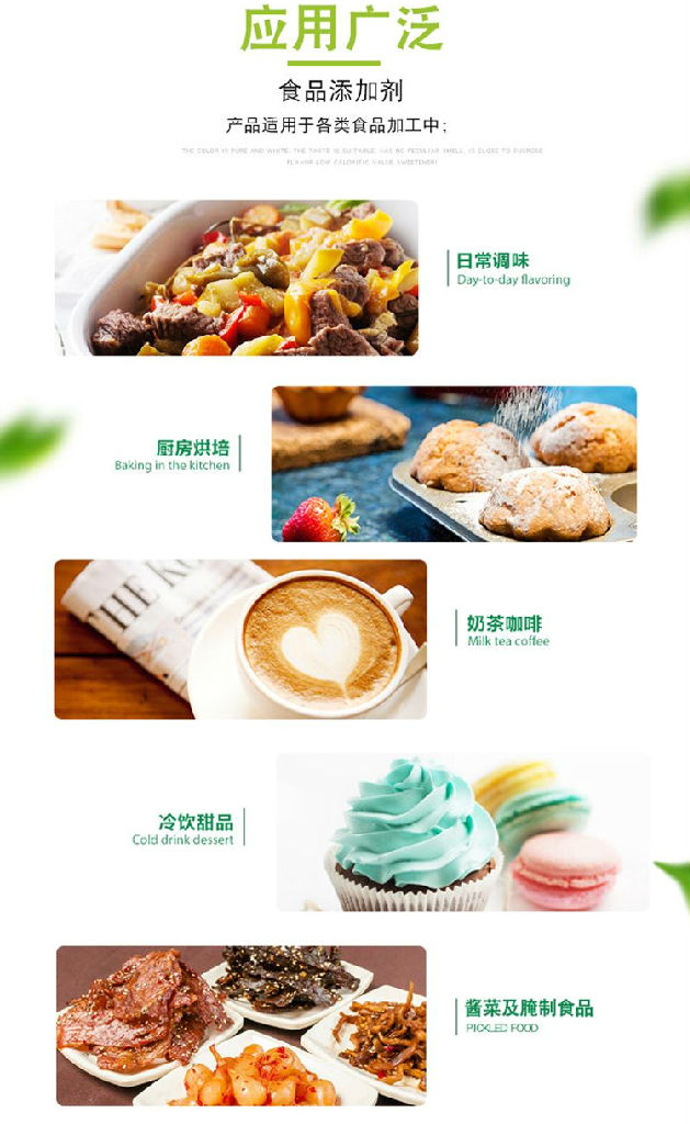 亦可用于家庭调味、烹饪、酱菜品、化妆品之甜味、糖浆、糖衣、甜锭、牙膏、漱口水、唇膏等。