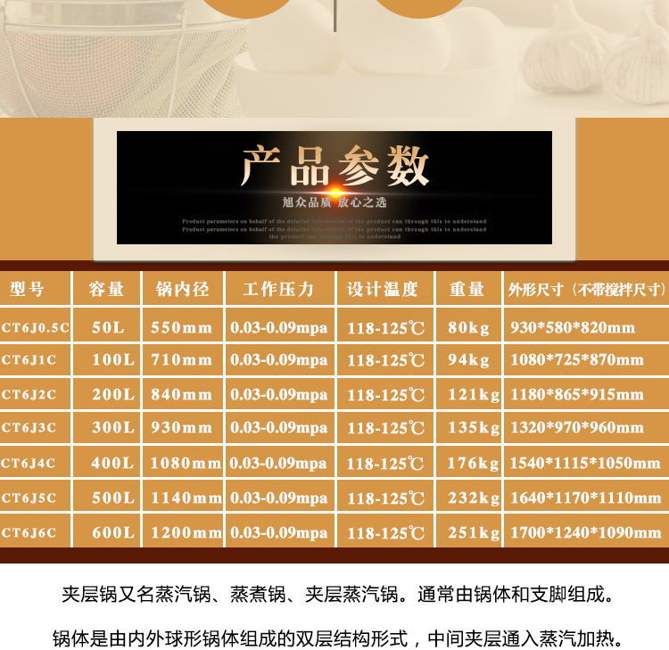 1、本设备为系列产品,主要由锅体、夹套、倾翻、搅拌与机架等部