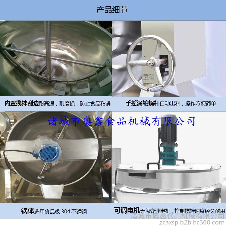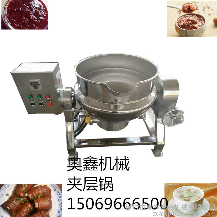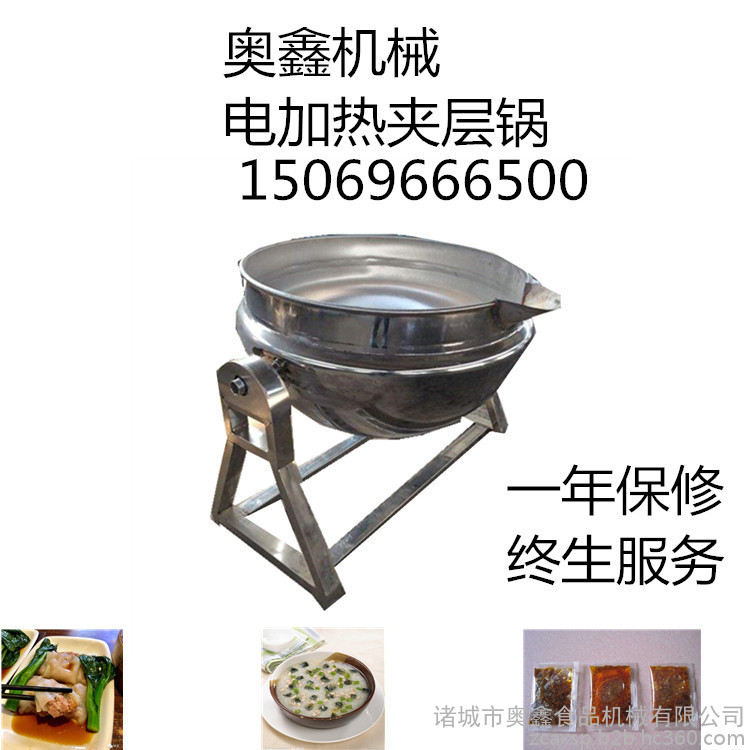 电加热夹层锅主要由锅体、电热棒、电控箱和可倾架、搅拌机等组成;电加热夹层锅内层锅体(内锅)采用耐酸耐热的奥氏型不锈钢制造,配电控箱控制系统,外型美观、安装容易、操作方便、安全可靠。 电加热夹层锅以无压力的电加热为热源,夹层锅具有受热面积大、热效率高、加热均匀、液料沸腾时间短、加热温度容易控制等特点。立式电加热夹层锅,物料从锅底出料口排出。