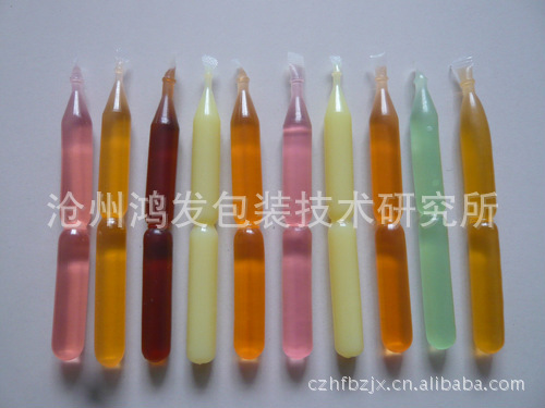 型 该机全部采用不锈钢制造,外形美观、精巧耐用、易于操作,功能齐全,能用于棒棒冰、奶棒、果奶、果汁饮料的灌装,可任意选用塑料外型包装。此机由灌装、封口、落料一次性自动完成。产量速度可自行调整。 技术参数: 生产能力 5000-15000支/小时 电源 220V 380V 50Hz 功率 3.8kw 重量 500Kg 外型尺寸 2940X740X1720mm B型 本机是A型替代产品,主要适用于聚乙烯塑料软瓶充填封口,适用于饮料、汽水、酸奶及粘度较小的果冻液的灌装封口。 本机接触食品部分采用不锈钢材料,符合食品卫生要求,除人工挂瓶外,其余均由机器自动完成,可编程控制、自动检测、无瓶不充填、注入式灌装、计量不用调解、溢料率1%、无气泡(国内**)。 技术参数: 型号 HFBBJ-B 包装速度 3000-10000支/小时 充填容量 25-200ml 使用电源 220V50HZ 电机功率 0.75kw 加热功率 3kw 外形尺寸 3.2x1.2x2.2M 调速方式 变频调速 整机重量 约800kg