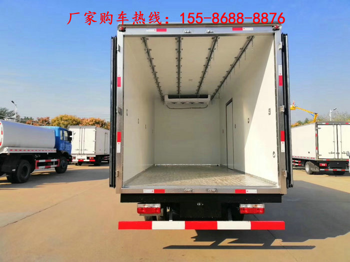 厢板材质:内外壁板选用国内优质的机制2.2mm玻璃钢;中间保温材料选用厚进口聚氨酯; 厢体厚度80mm门厚度80mm;底板上面整体铝花纹板,下面彩钢板,中间进口聚氨酯;