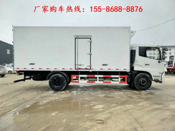 (1)、东风天锦6.1米/6.55米箱体冷藏车,整车型号:DFH5160XLCBX1DV,底盘型号:DFL1160BX1V,康明斯ISB180 50发动机,180马力,9吨后桥,东风8档变速箱,9.00钢丝胎,200L油箱,带空调、行驶记录仪、导航、巡航、中控门锁、电动玻璃、气囊座椅、ABS,轴距4700/5000,黄牌