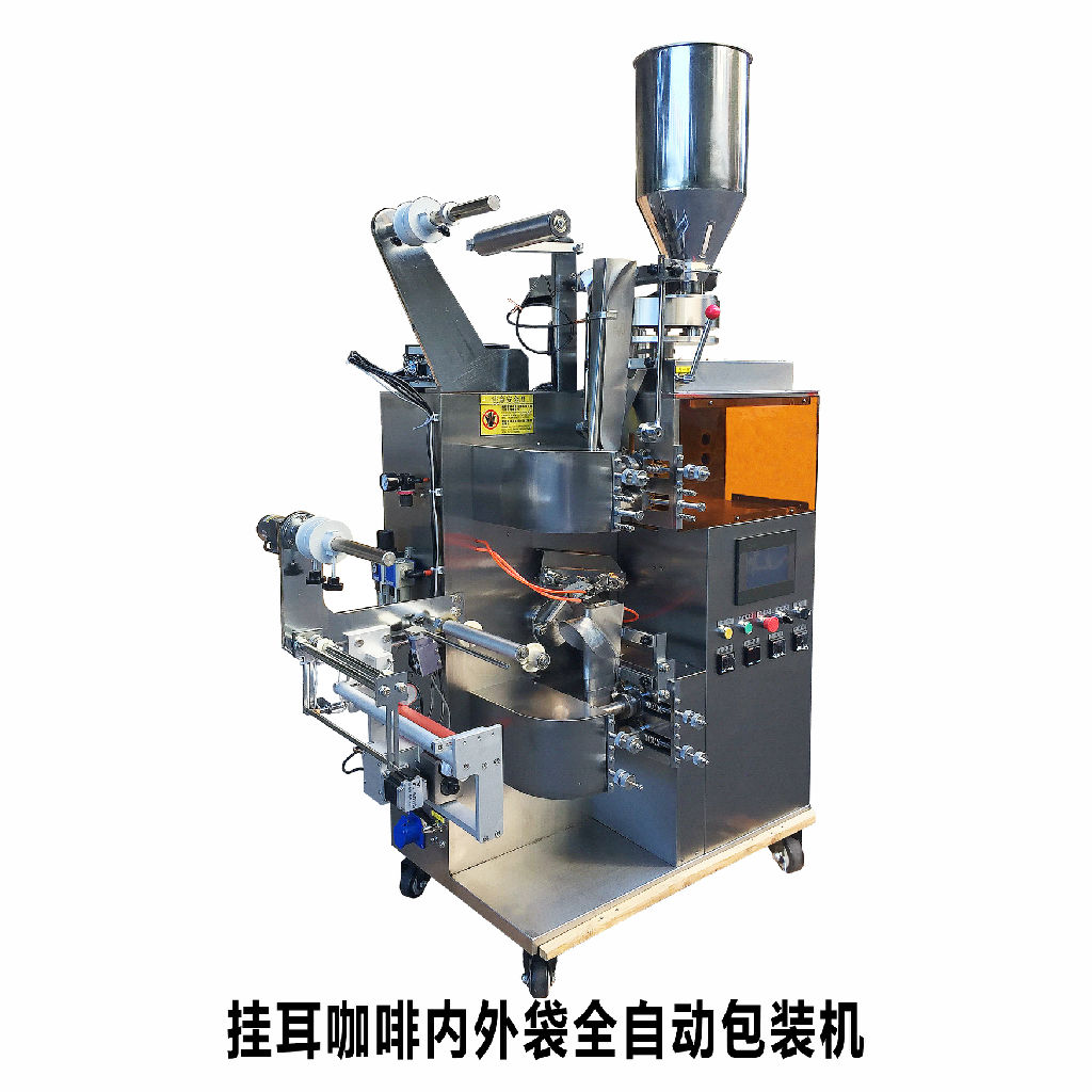 本系列机器适用于茶叶、咖啡、中草药植物根茎饮片等小颗粒物的内外袋挂耳包一次性包装