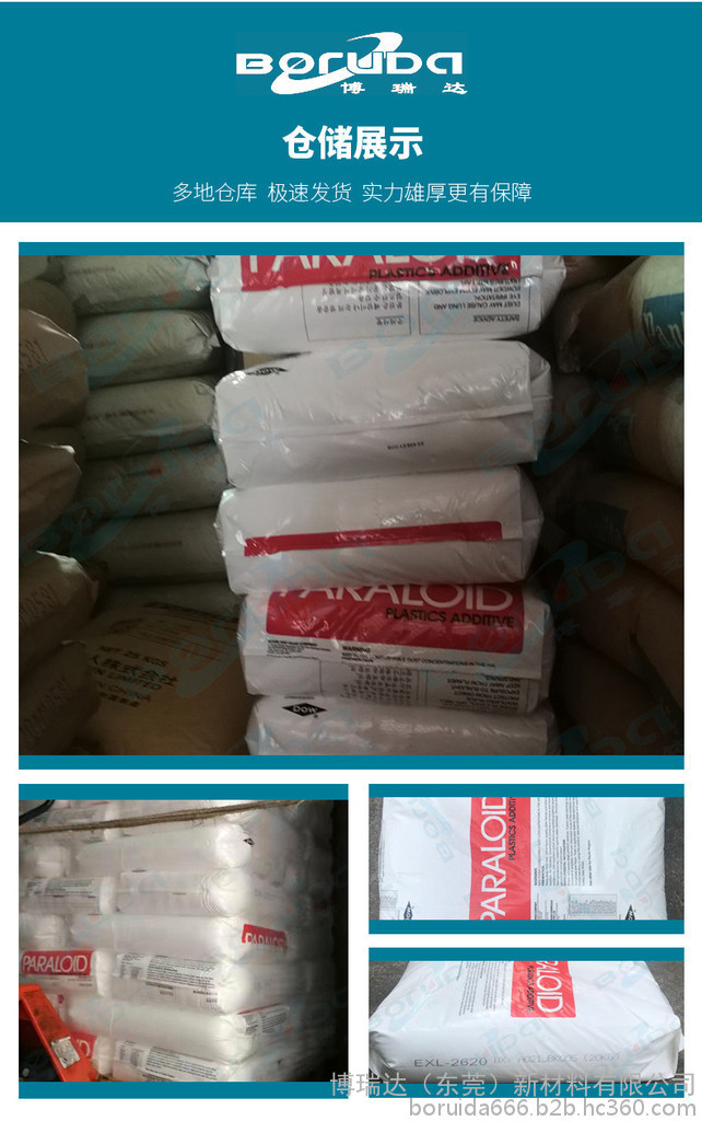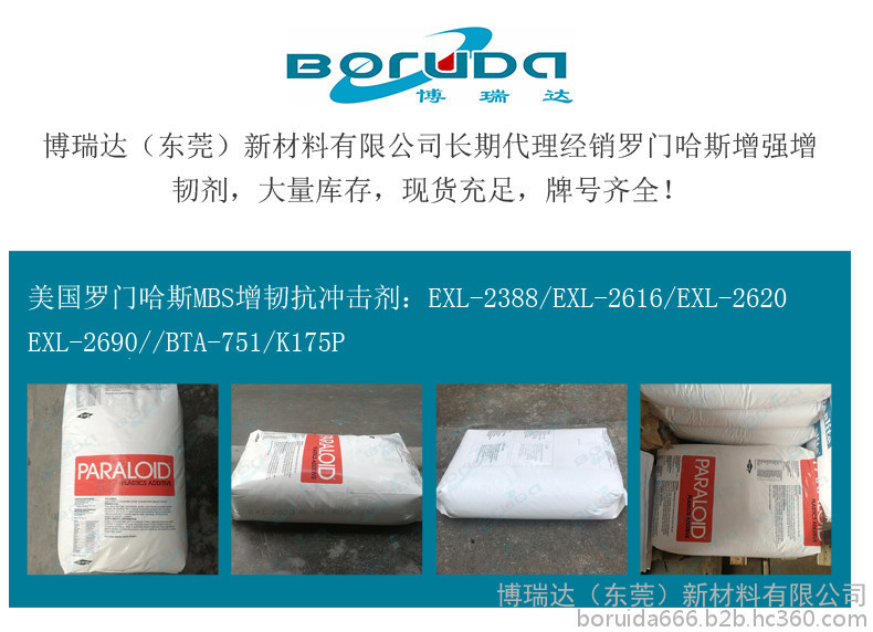 5、可应用领域:可应用在以下工程塑料树脂上以提高抗冲击强度:聚碳酸酯(PC)、PC/ABS、PC/PBT、聚酯(PET,PBT)、苯乙烯-丙烯腈共聚物(SAN)以及这些聚合物的增强增韧。另外也适合于玻璃纤维增强尼龙和环氧树脂之类的热固性树脂。 特点 优异的分散性 PPARALOID EXL-2620改性剂有一个交联的丁二烯苯乙烯共聚物作为核,接枝的聚甲基丙烯酸甲酯作为壳。这种核-壳结构使得产品可作为单独的粒子分散在基材中。