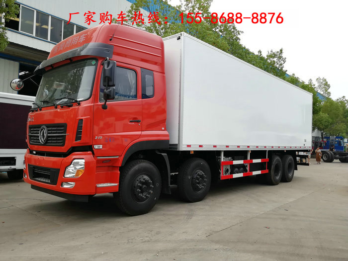 (2)、东风天龙前四后八9.4米箱体冷藏车,整车型号:DFH5311XLCAX1V,底盘型号:DFH1310A1,准乘人数:3人,康明斯ISL9.5-315E51A发动机,功率232kw,315马力,高顶双卧,方向助力,驾驶室空调,ABS,中控锁,电动门窗,12档变速箱,11.00R20钢丝胎,轴距:1850+4600+1350,总质量31000kg,整备质量13650kg,额定载质量17220kg,黄牌