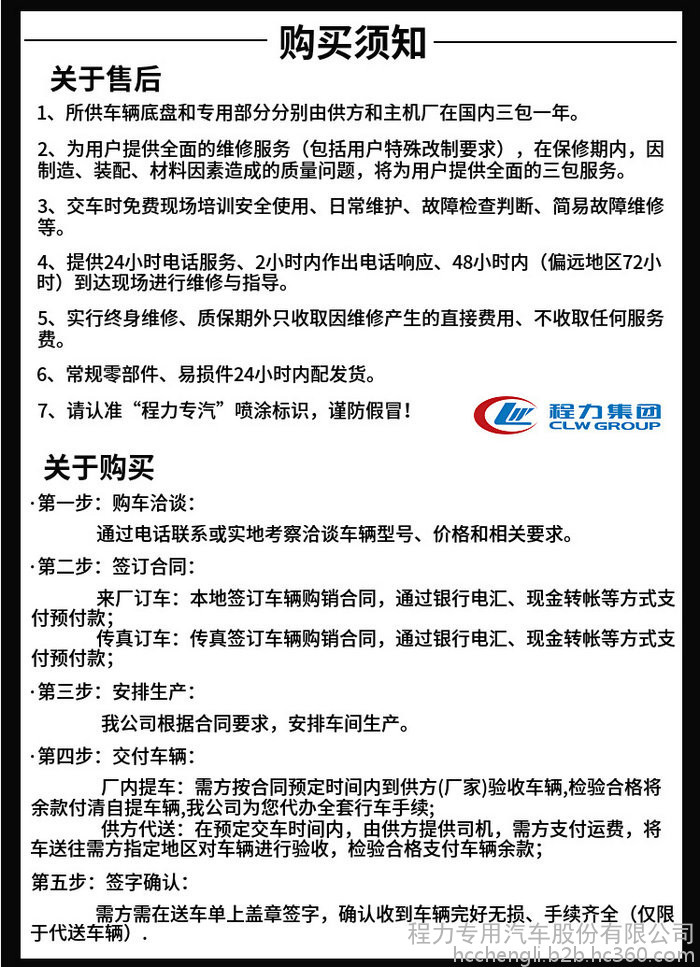 【售后服务】程力专用汽车股份有限公司承诺: