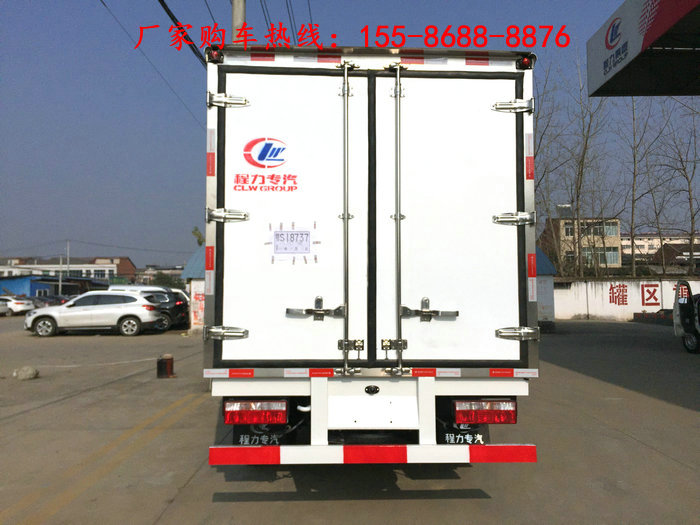程力专用汽车股份有限公司引进目前国际先进的冷藏车生产技术并斥巨资购置先进的发泡成型设备和18米大型复合板材生产线,采用先进的恒温湿法制板工艺,经恒温恒压长达10小时压制,确保厢体不变形,不起泡,耐冲击压力。冷藏车厢体内外壁板可选用优质的玻璃钢、不锈钢或彩钢板,中间保温材料选用8厘米厚进口级别聚氨酯挤塑板,厢体铝合金包边,底板为防滑花纹铝板,后门锁件为不锈钢。