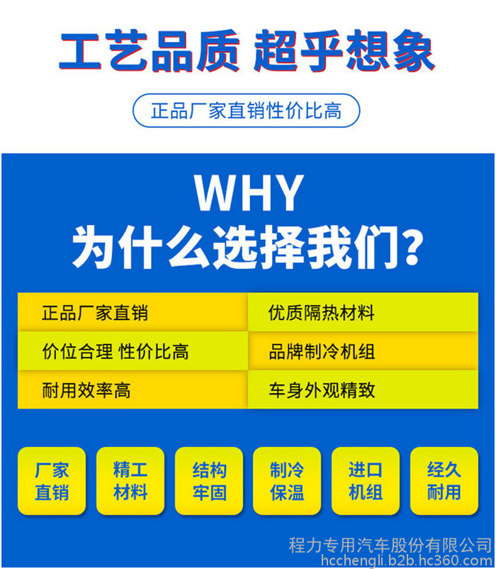 厢板材质:内外壁板选用国内优质的机制2.2mm玻璃钢;中间保温材料选用厚进口聚氨酯; 厢体厚度80mm门厚度80mm;底板上面整体铝花纹板,下面彩钢板,中间进口聚氨酯;