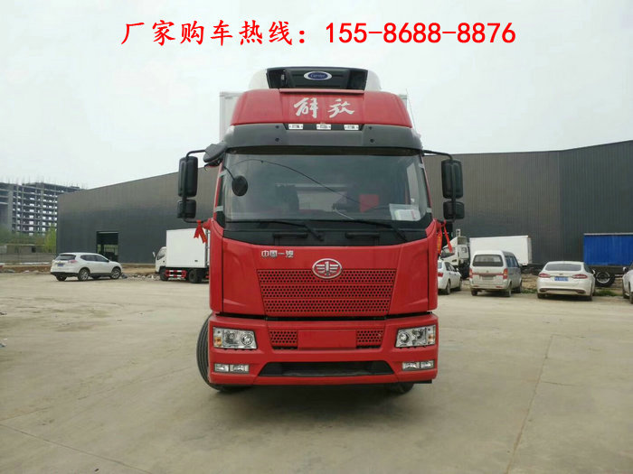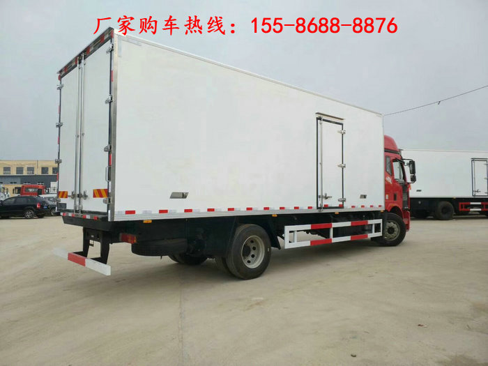 (2)、解放J6L 7米5箱体冷藏车,整车型号: CA5180XLCP62K1L2E5 ,底盘型号为:CA1180P62K1L2A1E5Z/CA1180P62K1L4E5,8档变速箱,5800mm轴距,378铸造桥,10.00R20 18钢丝胎,电动玻璃升降、驾驶员座椅为通风座椅、单 DIN北斗兼容车载系统、自动空调、电动液压举升、300L油箱、定速巡航、电调大灯、防飞溅挡泥板,大柴发动机 : CA6DH1-22E5,功率/马力:165kw/220马力,黄牌