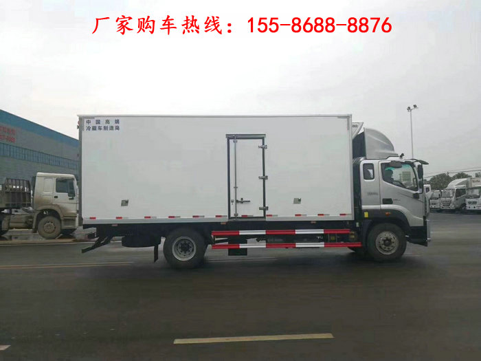 瓜果蔬菜冷藏车:蔬菜水果是鲜活食品,采收后易腐烂,在冷藏运输中要保持相对湿度和保证货物四周气流通风;其厢体采用全塑全封闭复合材料板块组合结构,内外蒙皮为玻璃钢板,中间夹层为聚氨酯发泡隔热材料,四侧用高强 度胶将玻璃钢板与聚氨酯泡沫材料粘合在一起,形成一种封闭性板块,并在拼装成厢体时用高强度胶粘结在一起,并用内埋高强度螺钉进行紧固。厢体具备重量轻、强度高、无接缝、外形美观、保温性好、耐腐蚀等特点。