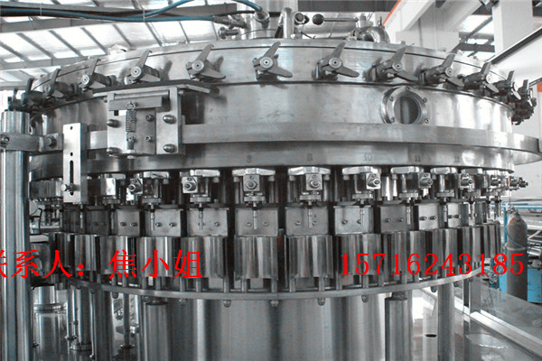 小瓶碳酸饮料灌装机工作原理:用于生产瓶装型含有二氧化碳气体的饮料,如市面上的可口可乐、雪碧、芬达等饮料产品。碳酸饮料生产线主要由水处理系统、配料混合系统、灌装系统、温瓶系统、包装系统等组成。