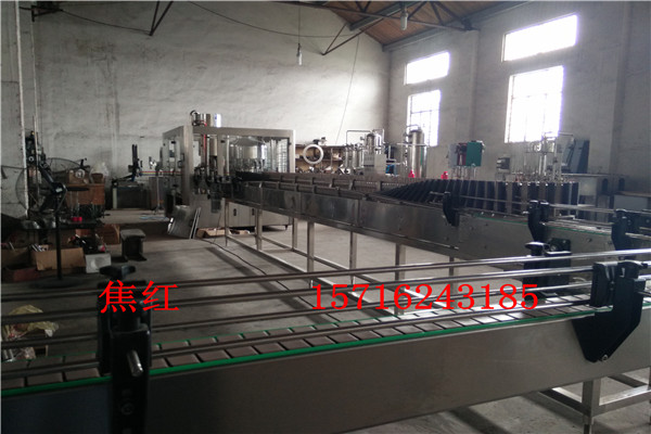 | 三合一主机由洗瓶机、灌装机、旋盖机、机架、封窗、主电机及传动系统、瓶传输细、理盖器及电气控制系统等部件组成。 洗瓶机的翻转机构,主要由分水盘、洗瓶夹、上转盘、导轨、防护罩、喷水装置、接水盘组成 灌装机构,主要由灌装桶、灌装阀、导轨、提升装置、卡瓶升降装置等组成。 封盖机构,由理盖器、落盖导轨及旋盖机三大部件组成。 辅助(或选配)设备有冲瓶水回流罐、进瓶风道和出瓶链,此外还可按客户要求配置人工上瓶平台(或理瓶机)、多排差速链式人工排瓶台、自动上盖机等。 |