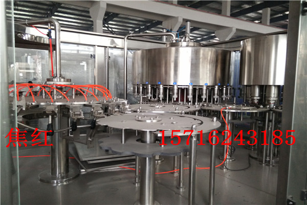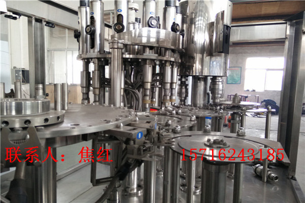全自动果汁饮料灌装设备:集冲洗、灌装、封盖于一体,适用于各种果汁,茶饮料的灌装生产,经过简单调整部分零部件,本机同时也可用于纯水,矿泉水的灌装生产,采用微重力负压灌装技术,灌装更迅速、稳定、准确,设备配有完善的回流系统,避免饮料的二次污染及氧化;能满足95℃以下的热灌装技术要求,并配备了CIP清洗系统,能对液缸,管道等液体接触的地方进行清洗;采用人机界面触摸屏控制,PLC电脑控制,变频器控制等先进技术。