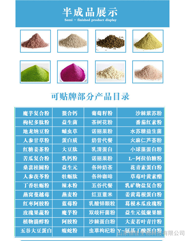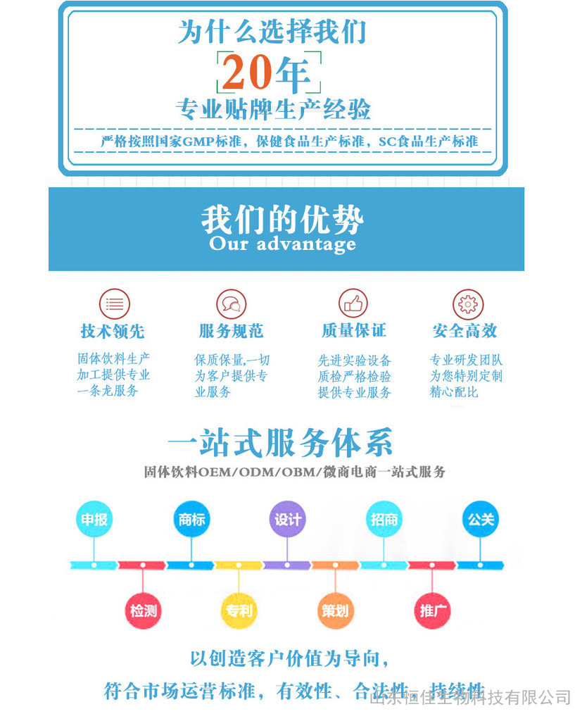 主要成分:客户可以选择恒佳生物提供的成熟配方,或根据客户要求加工定制