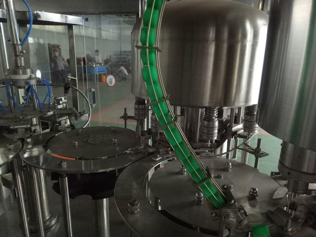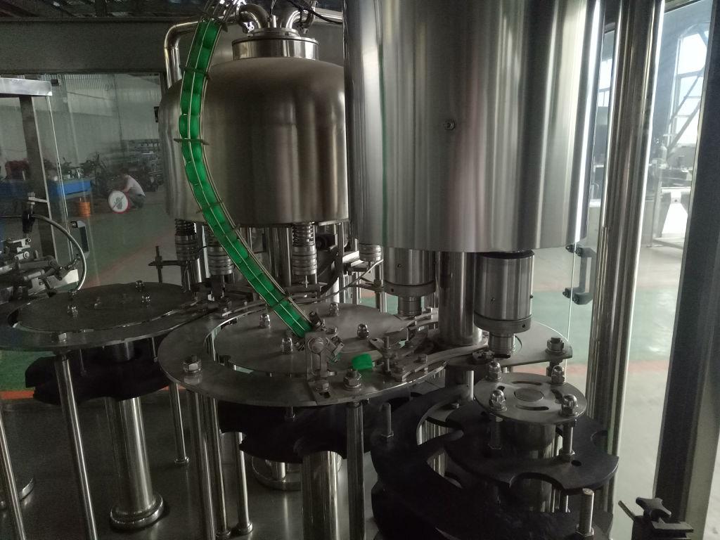 增加恒温系统,更换部分附件,可适应耐热PET瓶、果汁、茶、饮料等热灌装工艺要求。该机组技术先进、占地面积小、结构紧凑,适应于PET瓶装各种不含气饮料(矿泉水、纯净水、蒸馏水、果汁、茶、饮料等)常温或热灌装,也使用醋等液体的清洗、灌装、封口。是目前最先进的饮料灌装设备。