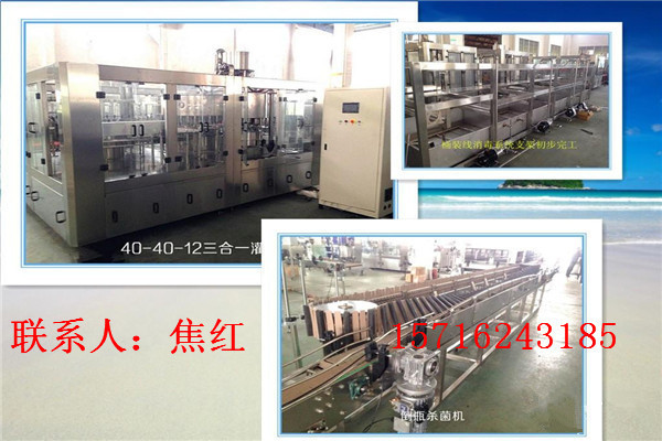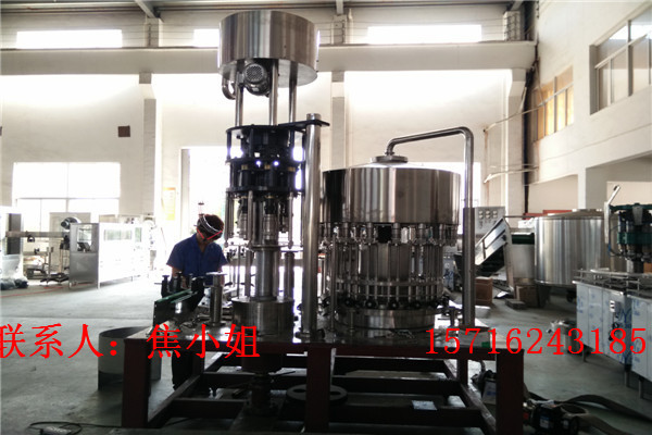 本公司是一家集生产研制,技术服务,新品开发于一体的饮机制造企业,拥有一流的技术研发和丰富经验的技术团队,公司主要产品有矿泉水、纯净水、汽水、热灌装生产设备能满足95℃以下热灌装技术要求,灌装阀及物料进出管路无卫生死角,同时配有CIP自清洗接口,封盖前设有对瓶口RO水冲洗装置,以确保瓶口无发霉现象, 采用磁力扭矩式拧盖头,实现 抓盖、拧盖功能。拧盖力矩无级可调,具有恒力矩旋封塑盖功盖。整机采用人机界面触摸屏控制、PLC电脑程序控制、变频器控制等先进技术。具有供盖系统自动控制、灌装温度自协检测、物料高温报警、低温停机并自动回流、无瓶不加盖、缺瓶等待、缺盖停机功能。等成套生产线及水处理设备.
