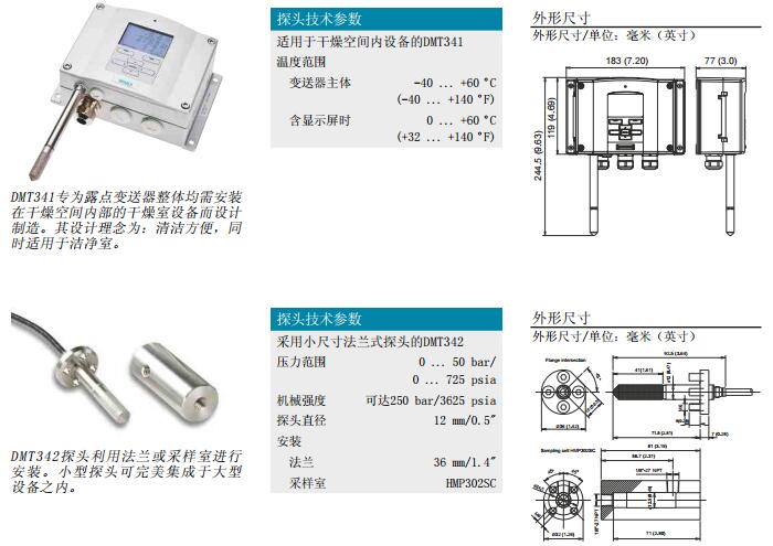 DMT342,带小尺寸法兰探头,适用于采样单元,同时也可以对比了解 DMP7