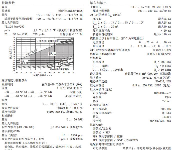 -70 ... +80 °C (-94 ... +176 °F)范围的露点值测量精度可达±2 °C(±3.6 °F)