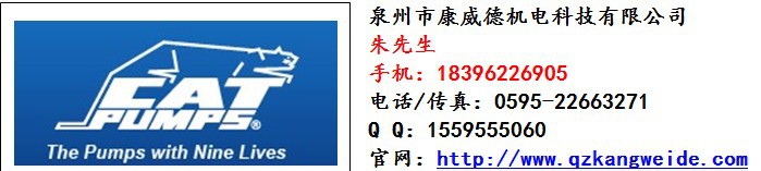 CAT PUMPS,是**的高压柱塞泵,他具有:1, **长耐久性能的高压柱塞泵;2, 高品质的部件;3, 超长寿命的耐久密封;4, 恶劣工作环境下的高可靠性;5,长时间连续工作;6, 高效、节能;7,低维护成本 等优良的特性. CAT主要有以下产品:一:CAT高压泵系类 1.CAT铜材质泵2.CAT镍铝铜质泵3.CAT不锈钢材质二:CAT调压阀安全阀蓄能器系类1.CAT调压阀2.CAT蓄能器 三:CAT泵浦备件系列1.CAT密封修理包2.CAT单向阀修理包3.CAT泵浦维修配件四:CAT泵组机组系类1.CAT清洗/污水/海水淡化放式机组2.CAT电子行业水箱式整体机组3.CAT实验用小型机组五:CAT机组附件系列1.进口斯普瑞喷嘴2.CAT过滤器3.CAT泵浦专用润滑油
