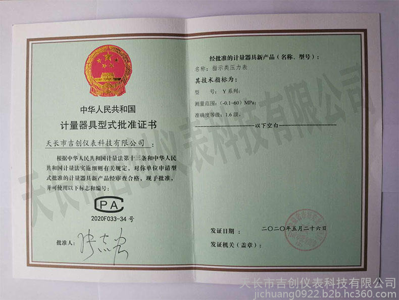尊敬的客户,请选择有正规计量器具证书的厂家,安全、可靠、有保障!