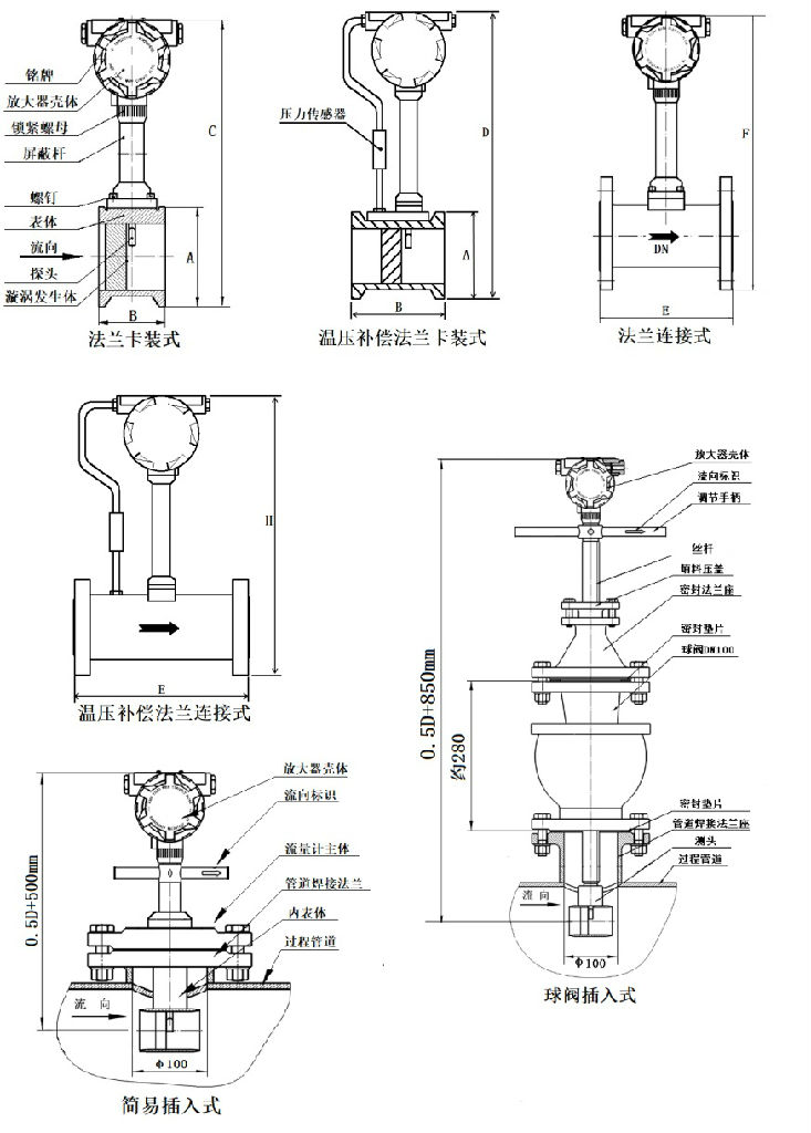 该仪表采用先进的设计理念,信号处理全部采用数字频谱分析技术,配合隔离、屏蔽、滤波等措施,克服了同类产品抗震性差、小信号数据紊乱等问题,并采用了独特的传感器全密封封装技术和防护措施,保证了产品的可靠性。产品有基本型和温压一体型两种型式,基本型测量单一的流量信号;温压一体型可同时实现温度、压力、流量的测量。每种型式都有整体、分体、插入式结构,以适应不同的安装环境