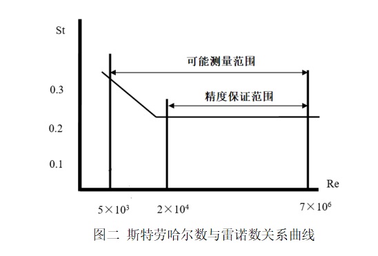 涡街流量计的基本原理是卡门涡街原理,即“涡街漩涡分离频率与流速成正比”。流量计流通本体直径与仪表的公称口径基本相同。如图一所示,流通本体内插入有一个近似为等腰三角形的柱体,柱体的轴线与被测介质流动方向垂直,底面迎向流体。当被测介质流过柱体时,在柱体两侧交替产生漩涡,漩涡不断产生和分离,在柱体下游便形成了交错排列的两列漩涡,即“涡街”。理论分析和实验已证明,漩涡分离的频率与柱侧介质流速成正比。