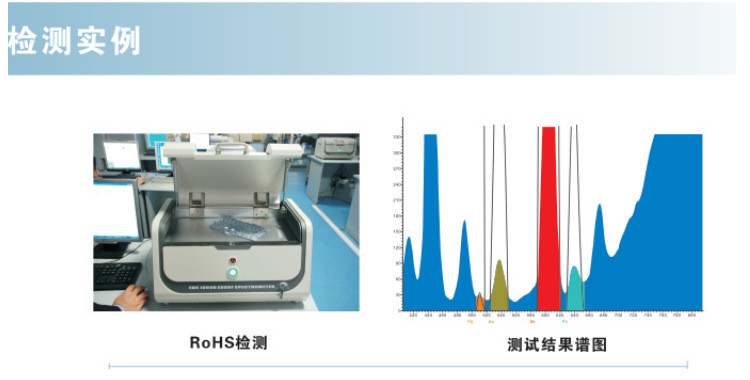 EDX1800B。应用新一代的高压电源和X光管,提高产品的可靠性;利用新X光管的大功率提高仪器的测试效率。可用于RoHS检测分析、地矿与合金(铜、不锈钢等)成分分析、金属镀层的厚度测量、电镀液和镀层含量的测定、黄金,铂,银等贵金属和各种首饰的含量检测