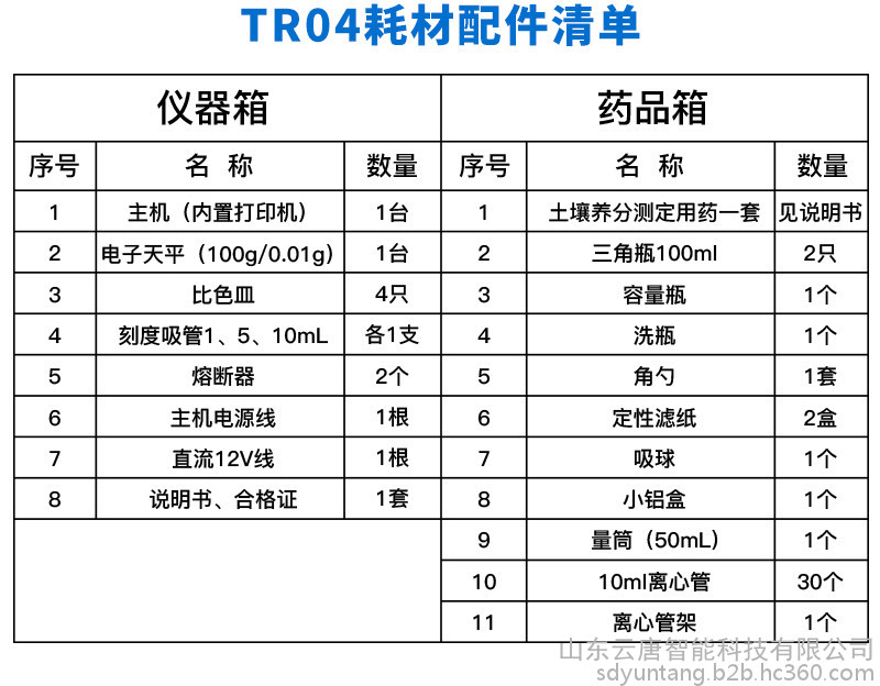 | 01 | 主机(内置打印机) | 1台 | 01 | 土壤养分测定用药一套 | 见说明书 |
