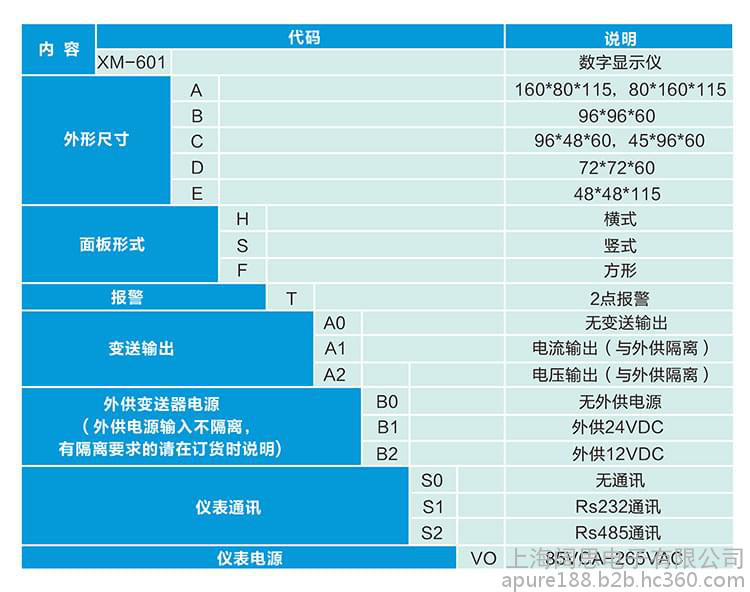 数字式显示仪表与各类模拟量输出的传感器、变送器配合,完成温度、压力、流量、液位、成分、位移等物理量的测量、变换、显示和控制。
