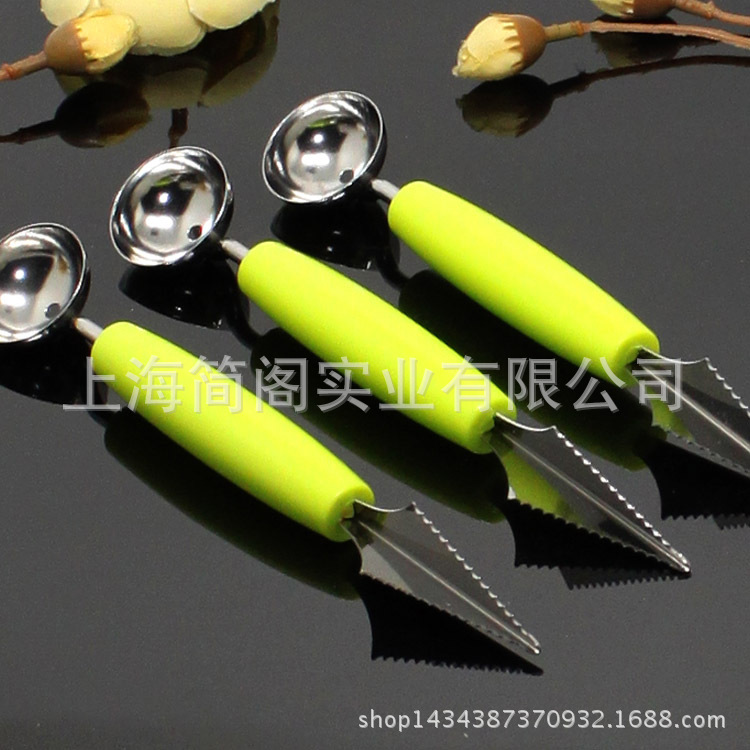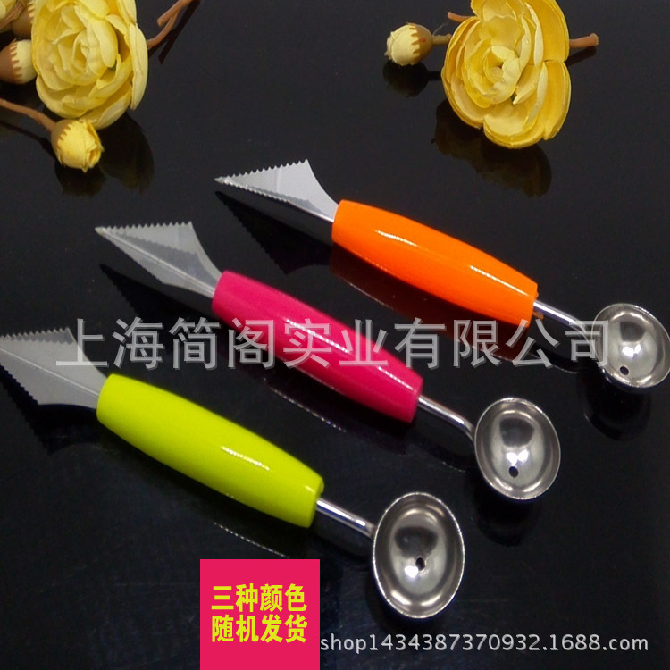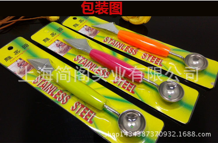 产品信息 名称:雕果器 3色(橙色、黄绿色、玫红色) (如需定购其他颜色,且定购量大,可与我们联系) 材料:不锈钢210/塑料PP每把克重:28g产品规格:18.5x2.5cm