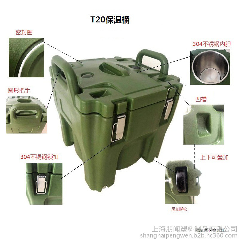 军绿色保温桶 粥桶 周转桶 堆叠桶 咖啡桶 汤水桶 水**定制
