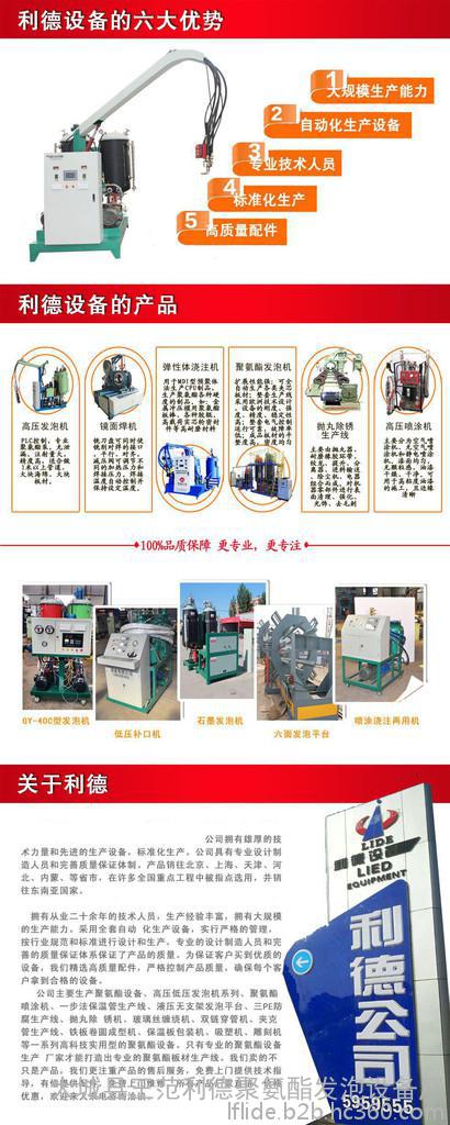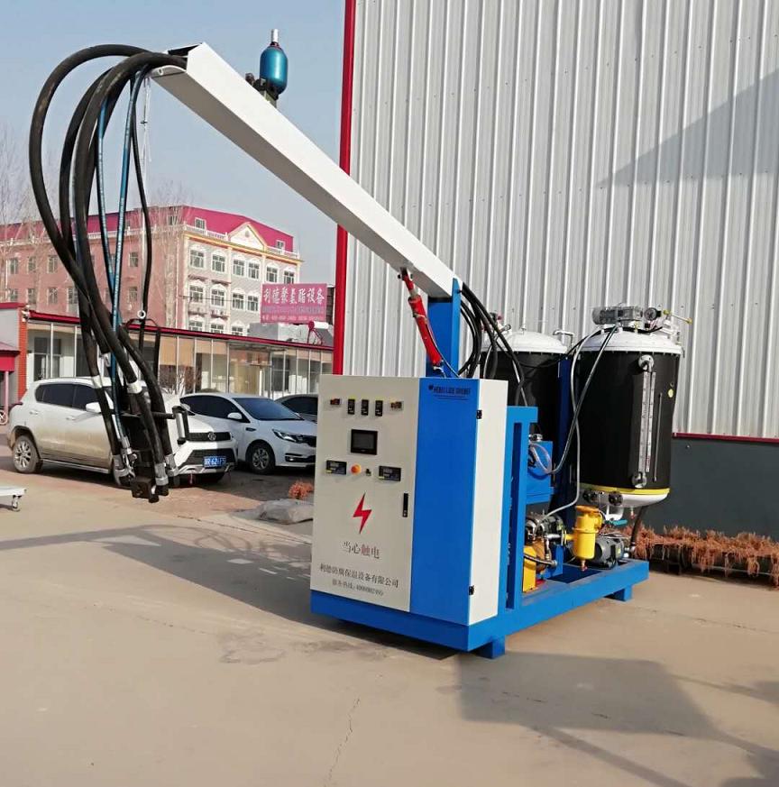 本品广泛应用于多模式连续生产硬质半硬质聚氨酯制品,如:石油化工设备、直埋管道、冷库、水箱、仪表等保温绝热和隔音设备工艺制品。产品特点: 1、浇注机的浇注量可以在0至**大浇注量之间调节,调节精度为1%。 2、本产品具有温度控制系统,达到指定温度时可自动停止加热,其控制精度可达1%。 3、本机具有溶剂清洗和水、空气吹扫系统。 4、本机具有自动加料装置,可随时任意加料。A、B料桶均可装120公斤料液。料桶设有水夹套,利用水温来加热或制冷料液,各桶有水视管和料视管。 5、本机采用截门调节A、B料液比例,比例精度可达1%。 6、客户自备一台空压机,压力调节到0.8-0.9M