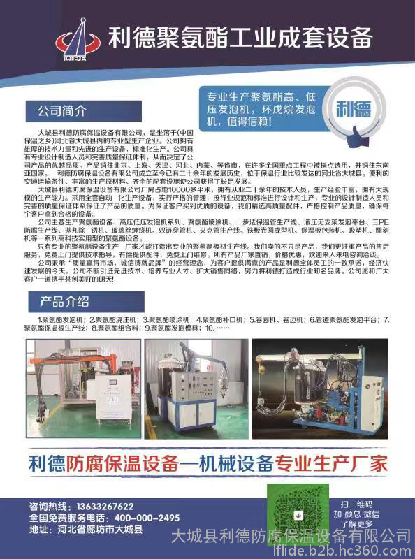 本品广泛应用于多模式连续生产硬质半硬质聚氨酯制品,如:石油化工设备、直埋管道、冷库、水箱、仪表等保温绝热和隔音设备工艺制品。产品特点: 1、浇注机的浇注量可以在0至**大浇注量之间调节,调节精度为1%。 2、本产品具有温度控制系统,达到指定温度时可自动停止加热,其控制精度可达1%。 3、本机具有溶剂清洗和水、空气吹扫系统。 4、本机具有自动加料装置,可随时任意加料。A、B料桶均可装120公斤料液。料桶设有水夹套,利用水温来加热或制冷料液,各桶有水视管和料视管。 5、本机采用截门调节A、B料液比例,比例精度可达1%。 6、客户自备一台空压机,压力调节到0.8-0.9M