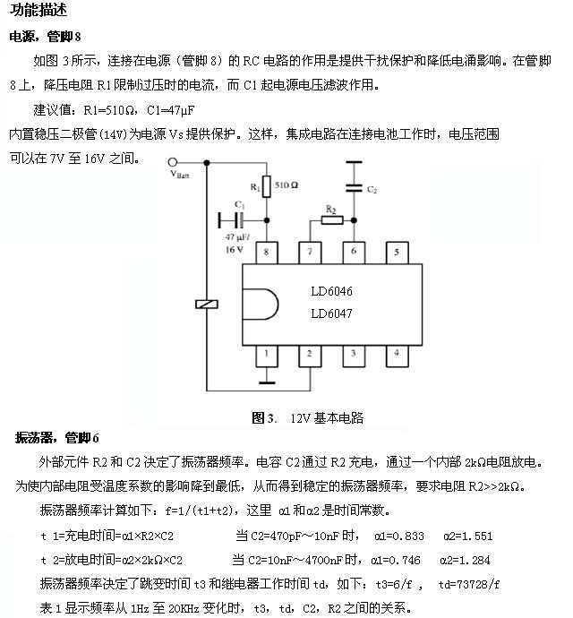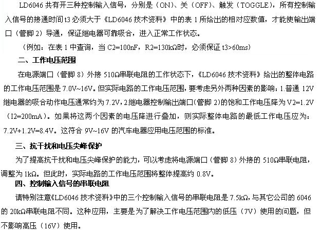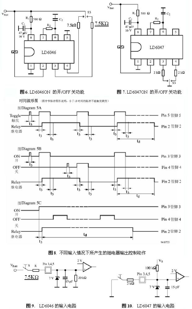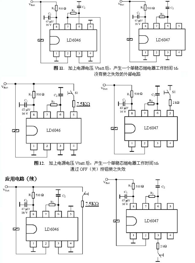 LD6046B和LD6047B分别是两种极性触发的长周期定时器,用预先设置好的继电器工作时间,自动控制汽车高负载器件的工作过程。器件具有加电重新设置的功能,确保定时器对强电流器件的工作进行有效的控制。