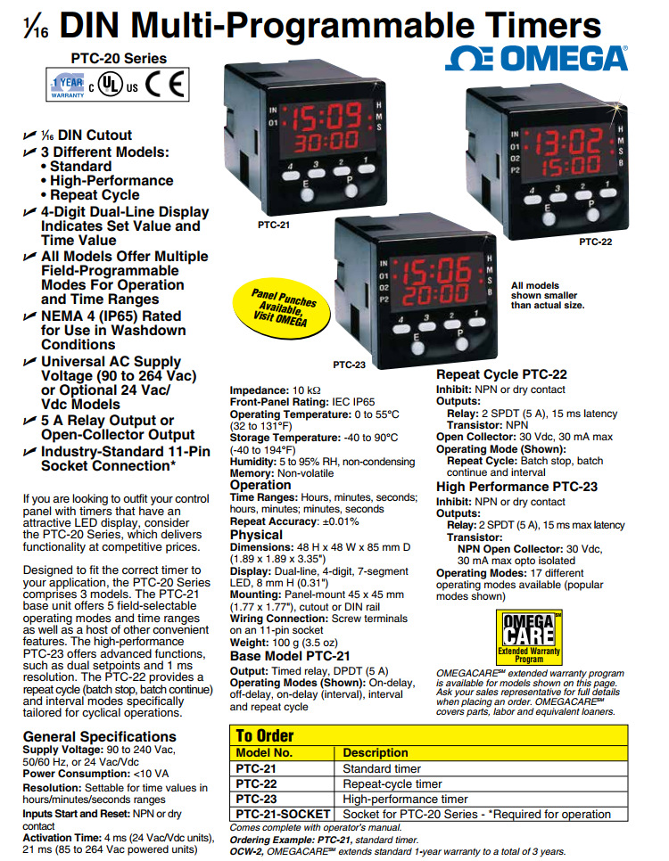 美国欧米茄PTC-21/PTC-22/PTC-23多个可编程定时器