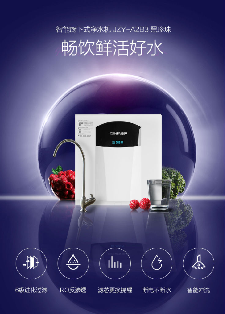 浩泽净水器A2智能经典厨下式净水器(土豪金)产品参数: