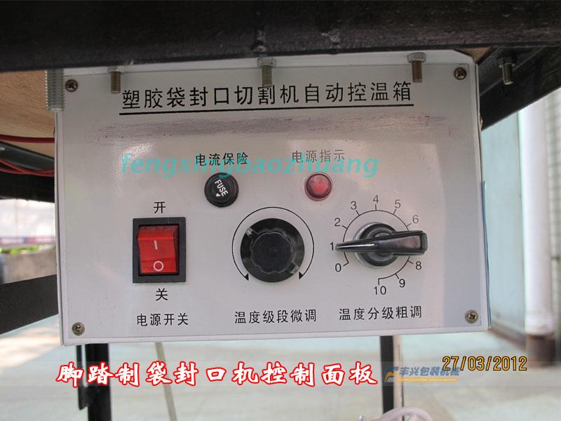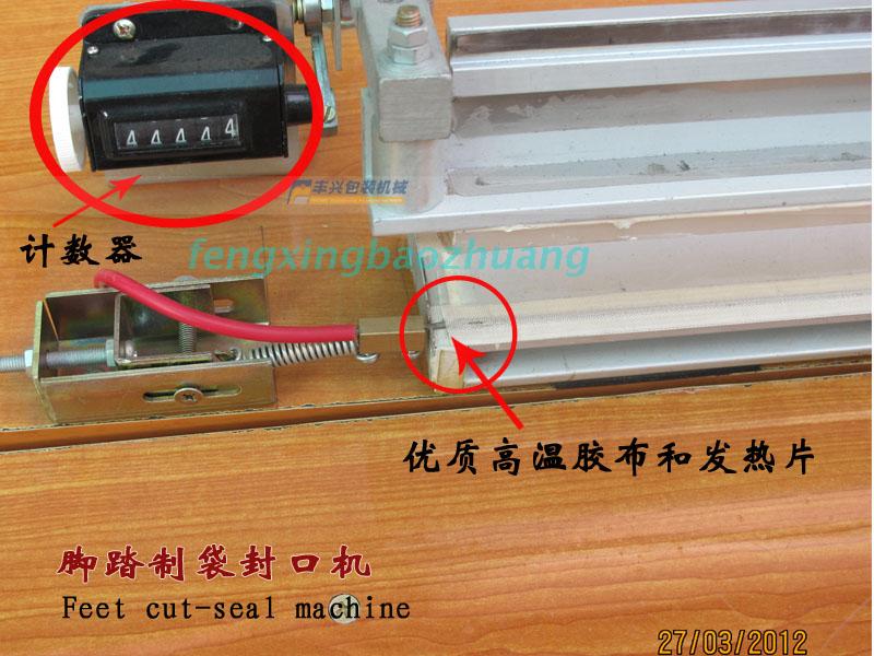二:图片展示(实物拍摄,因个人显示器不一样,色差有所不一样,请谅解!) 三:产品详情: 1.产品参数 型号:500型 脉冲功率:600W **大封接长度:400mm **大封接宽度:0.3mm 加热时间:1-5秒 电源:220V 重量:约20kg 2.产品说明: 四、操作程序 插上电源,打开旋钮开关,电源指示灯亮,并把旋钮调到合适位置设定封口时间,即可开始工作。轻踩脚踏板时,工作指示灯亮,当工作指示灯熄灭时,即封口完成。 更换刀片时,用螺丝刀经过更换孔松下螺丝,换上新刀片再拧上即