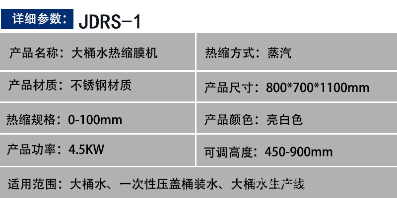 该机适用于对大桶饮用水生产过程中瓶口包装膜的热缩,并设有成品输送系统减速电机控制,其中自动传送带3米,可以大大降低工人的劳动强度及提高工作效率。本机采用红外管加热系统,共有5只红外加热管,排列方式为:顶部1只,两边侧面各2只,可以使瓶口周围温度均匀,包装膜热缩效果良好。