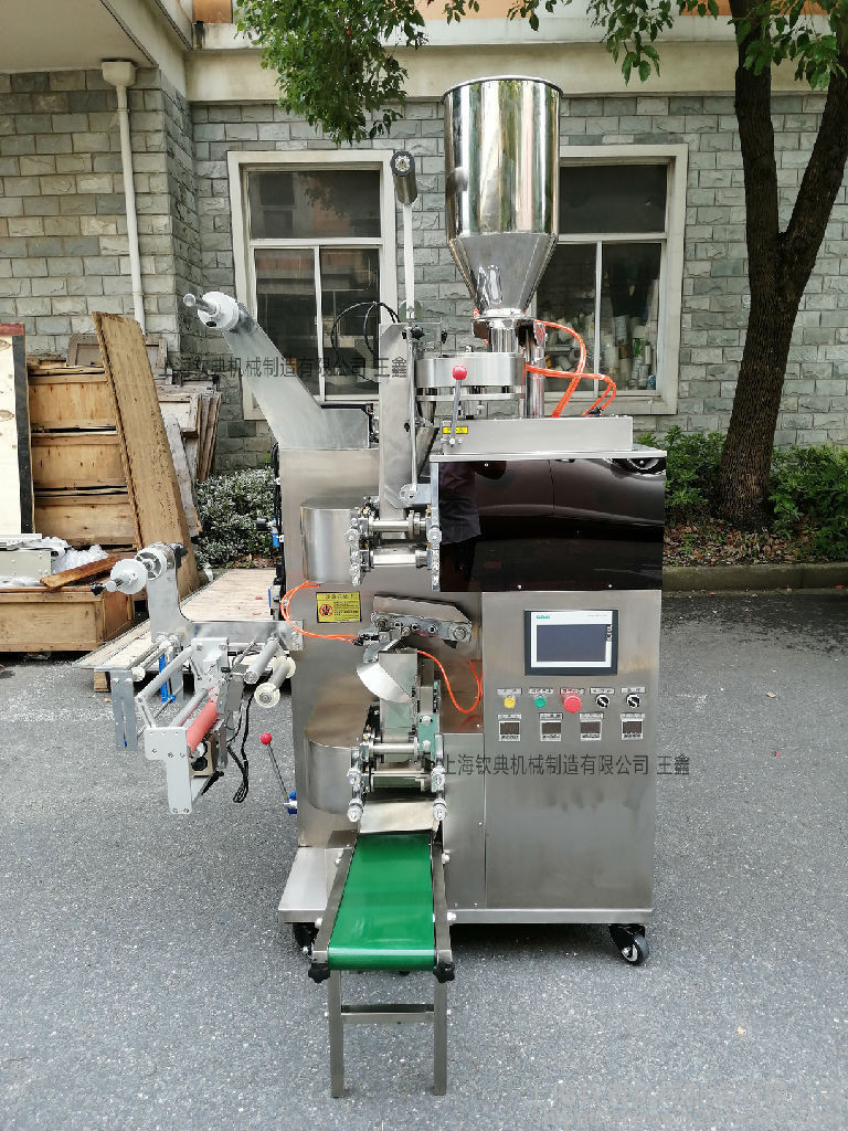 4.内袋封纸采用光纤跟踪定位,外袋封纸由步进电机控制,袋长稳定,光电眼跟踪定位,可通过电脑屏调节参数来自由设定袋长,袋宽更改需更换相应规格的制袋器。