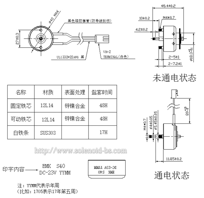 1.名称型号(P/N):咖啡机电磁铁 圆管式电磁铁 BS-4020T-02