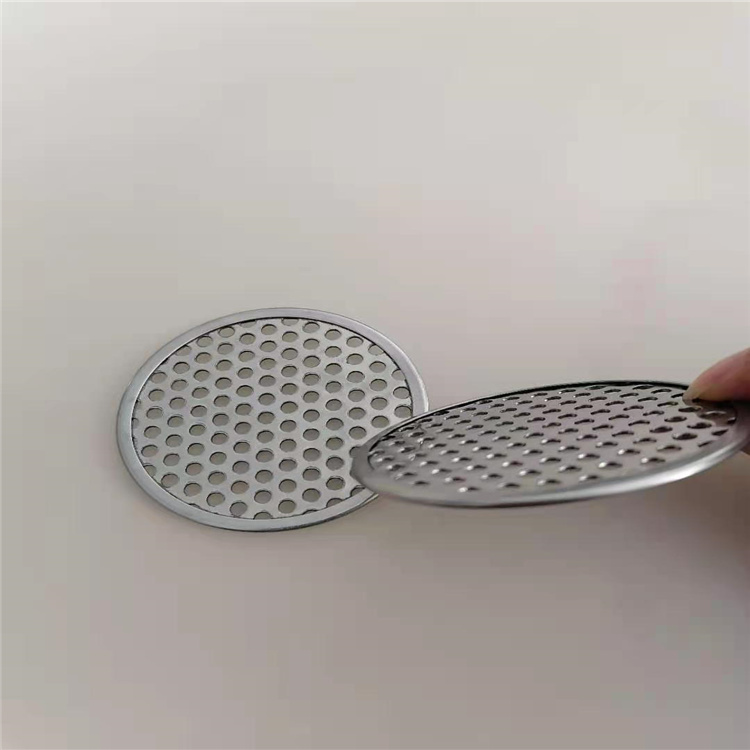 包边过滤网片,是先通过冲床经过特制模具加工成需要的形状,在通过模具用板条进行包边处理。