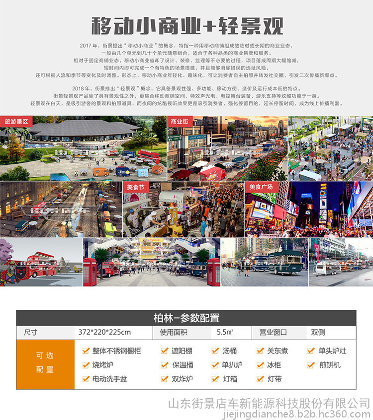 山东街景科技主要为城市商街、文旅景区、旅游营地、夜间经济、市政民生、个人创业、展销加盟等领域提供场景规划设计和产品服务。公司提供:冰淇淋房车,多功能小吃车,流动餐车价格,冰淇淋车等定做,提倡以餐饮购物、休闲游乐、特色住宿、城市景观等业态组成移动方案,为客户打造一体化移动商业场景解决方案,营造更具差异化的商业氛围。
