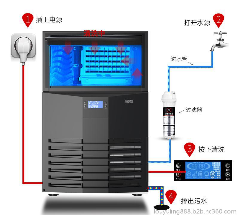 2.智能系统:国际电气PLC控制(LG、西门子、施耐德等进口品牌),智能控制制冰过程,全自动保护,如满冰,断水,高低压报警,电压,电流,相位,相序全自动检测。