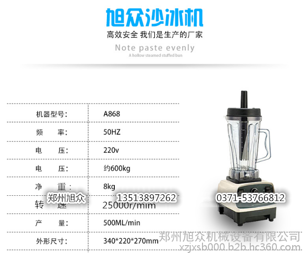 郑州旭众A868商用沙冰机 多功能沙冰机 大功率破壁机果蔬机 奶茶店沙冰机 搅拌机现磨豆浆机 奶昔机 绿豆沙冰机 多功能养生破壁机