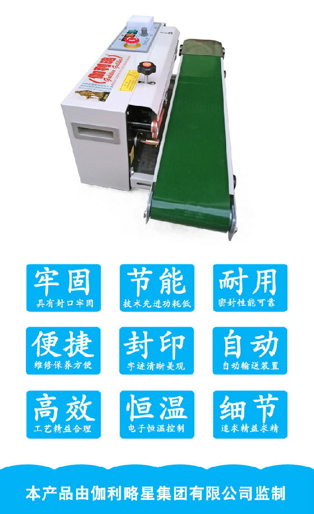 2、伽利略GFRD1000多功能墨轮印字封口机广泛应用于食品、医药、日用品、土特产、化工产品、电子产品、茶叶、化妆品、乳品、饮料、小五金、蔬菜种子、铝箔袋等产品。