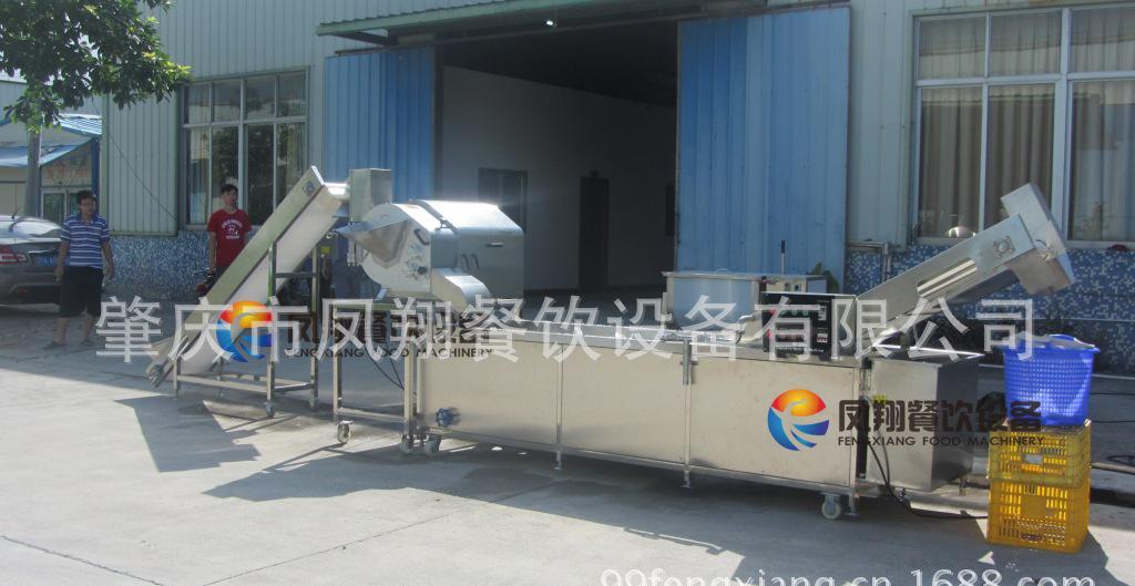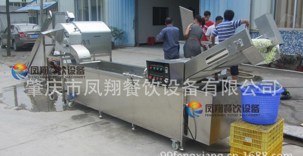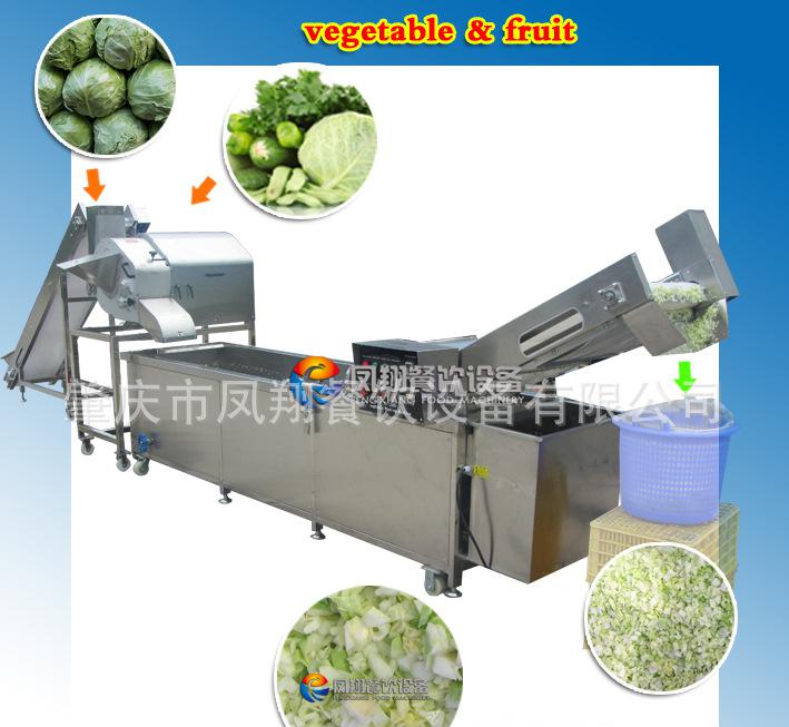 将切割好的蔬菜、水果,采用高压气泡水浴冲击下,使物料在水里翻转,有效地分离蔬菜表面的泥沙、杂质、污物,水流的大小可以控制,清洗下来的污物,经滤网被拦截,而清洁干净的菜,由输送带提升进入下一个工序,而在提升过程中再次被喷淋清洗。工作过程中,进水管和喷淋水管始终供水,使水箱内的污水逐步被替换。适用于大型的净菜加工。