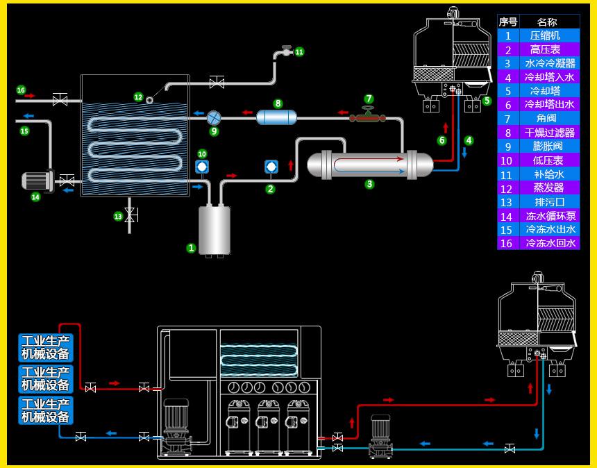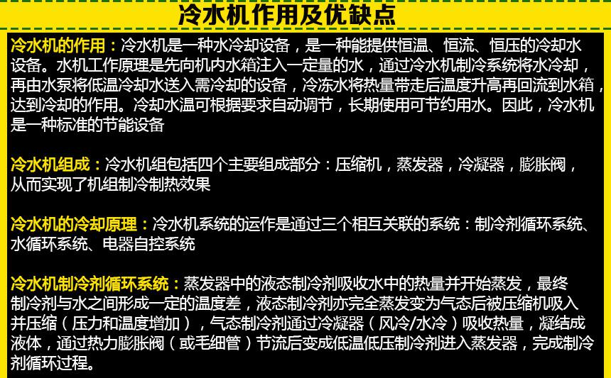 冷水机别名:俗称冷却循环水机、水冷机、冷冻机、制冷机、冰水机、冻水机、冷却机等。