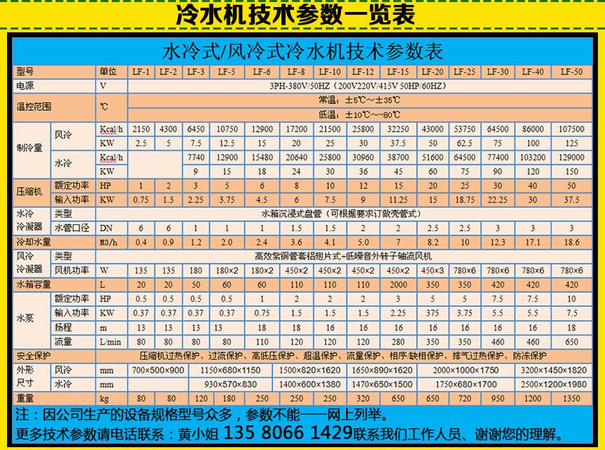 冷水机电动功率分为:0.37KW、0.75KW、1.5KW、2.2KW、3.75KW、4KW…可根据用户要求做到45KW。