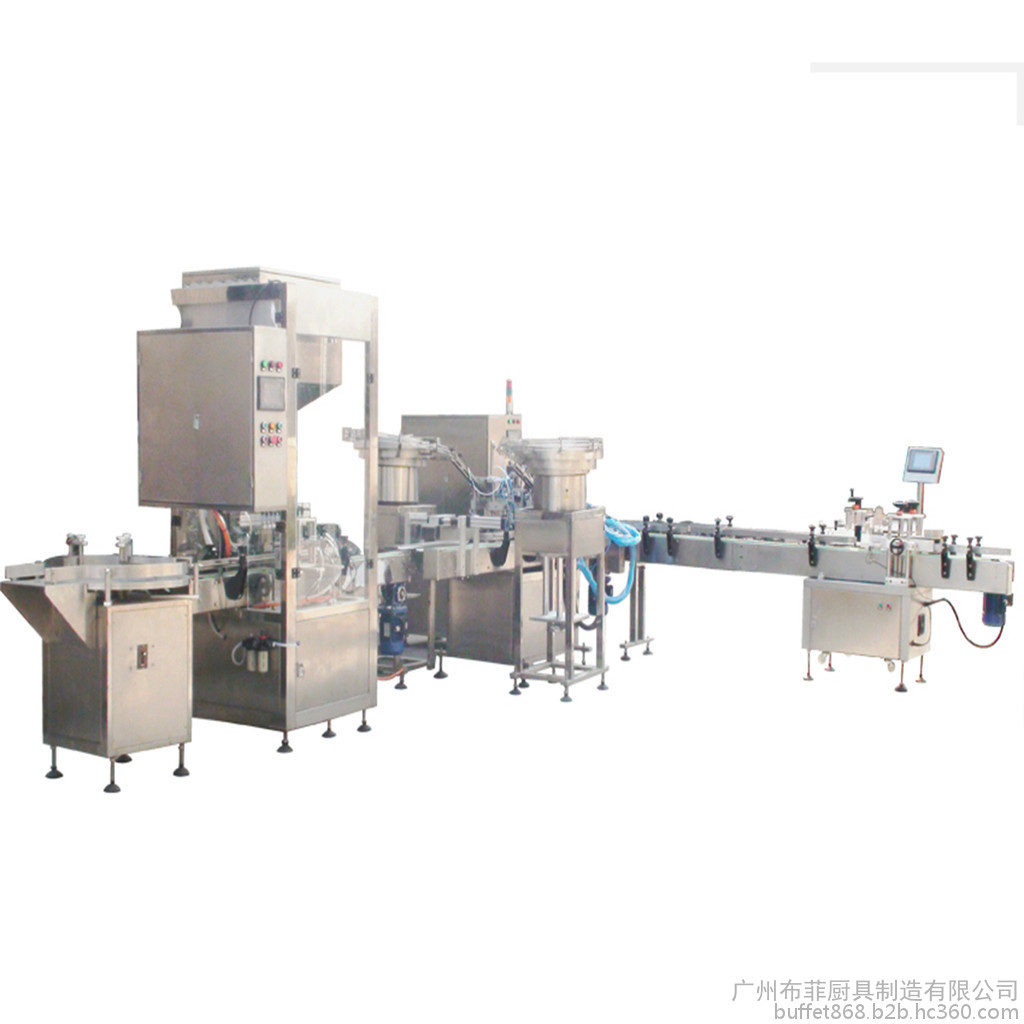 广州友好智能泡泡水灌装生产线是由10头灌装机、自动理盖下盖机、旋盖机再加立式圆瓶贴标机组成,本生产线为泡泡水订做而成,类似日化类、食品类、制药类可同类适用。