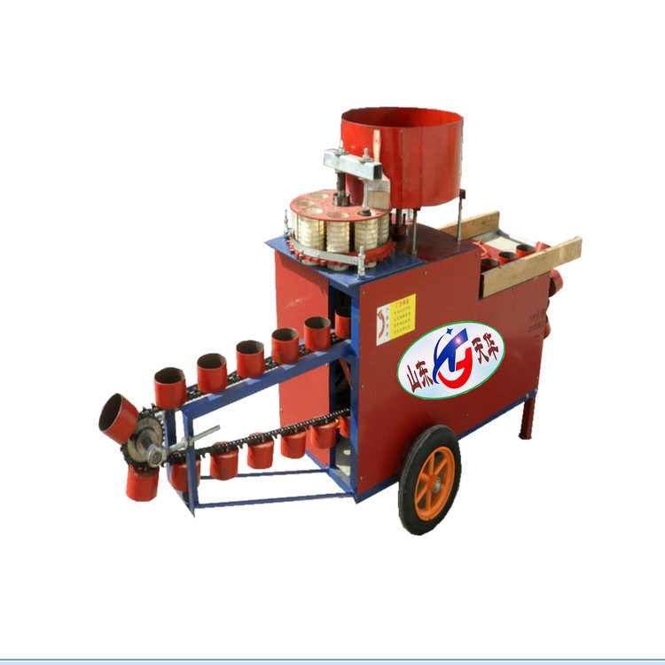 天华营养钵装土机(营养土装钵机)育苗土压钵机由变速箱、喂入机构,钵模盘传动装置等组成,体积小,操作简单,安全可靠拆装维修方便,耐磨损,抗老化,关键部位不锈蚀,汽电两用重量轻,便于田间移动作业。天华营养钵装土机由电机或汽油机带动齿轮箱,使中轴和连杆转动,中轴带动料斗里拨土翅把育苗土喂入料筒中,料筒转动将育苗土定量装入营养钵中,连秆转动完成钵体输送,整个过程中由人工装入和去下钵体。天华营养钵装土机TZB-80,可用2.2KW电机或4P汽油发动机带动,每小时装钵2000-2500个,装钵大小提前定做,外形尺寸1500*650*1200mm,重量130公斤,价格9600元,不含运费。营养土装钵机,营养土分装机,营养土灌钵机,营养钵装料机,花盆装土机,苗土装盆机,育苗土灌装机,料土分装机,花盆基质装填机,育苗基质装盆机,花盆上土机,花卉盆钵装填机,花盆填土机,有机土装钵机